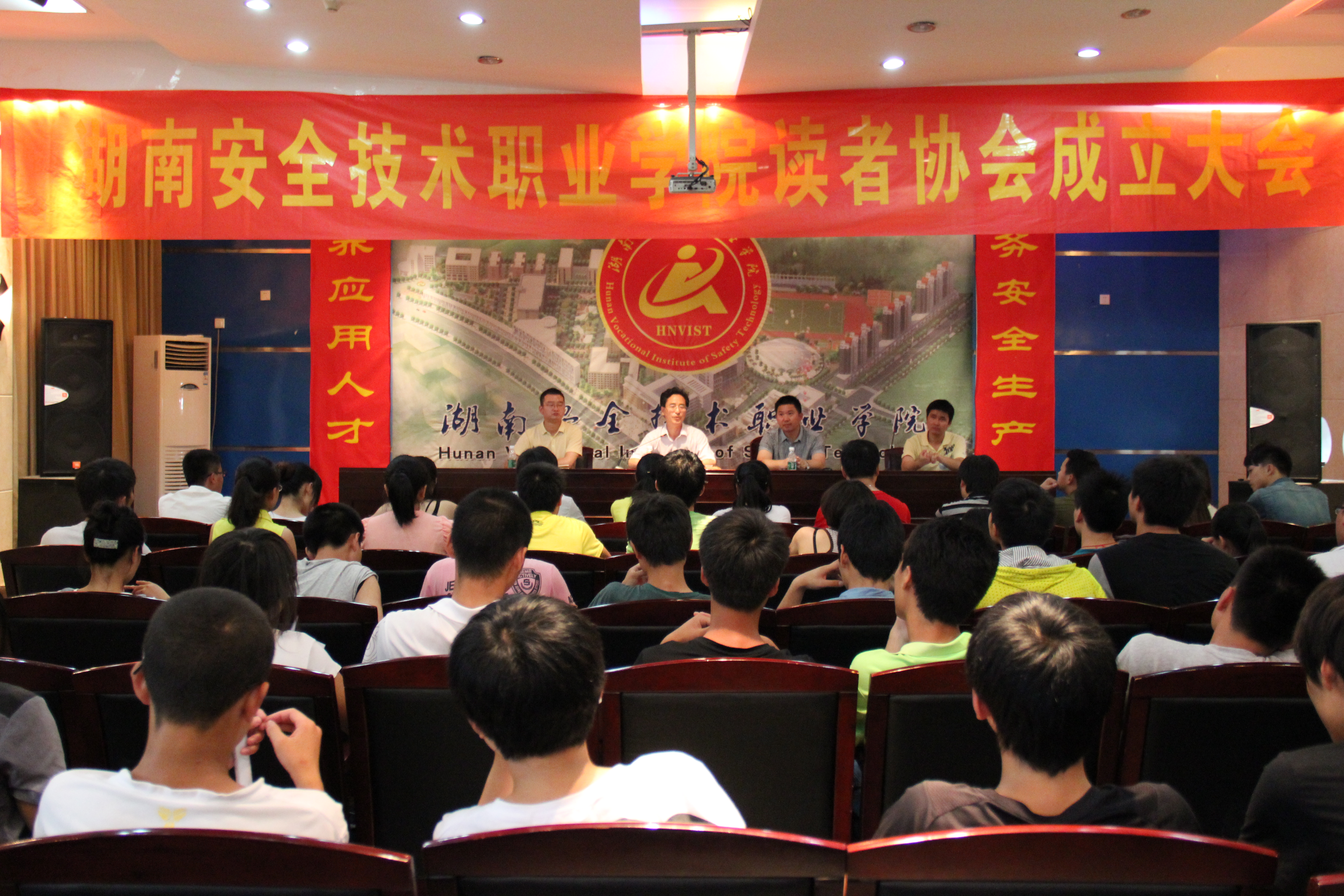 会议在全体人员的校歌声中拉开帷幕。首先由学生与保卫工作处王剑明副处长宣布《关于成立湖南安全技术职业学院读者协会》决定并致辞。随后读者协会代理会长朱国同学和学生社团联合会副主席湛博同学先后上台发言。接着,作为读者协会指导老师,教务处学籍管理科科长彭志文老师讲话,他对读者协会的成立表示祝贺,并对协会今后的工作提出了要求。