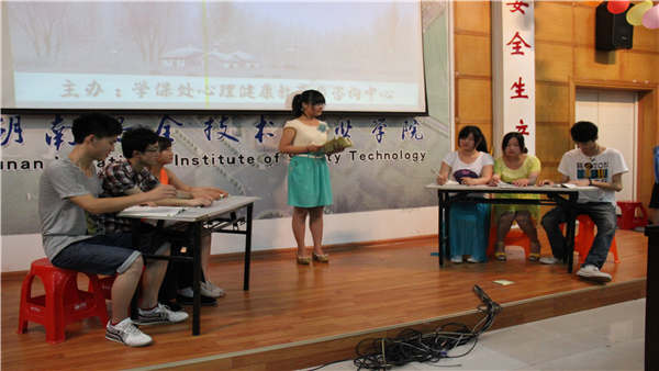 为了宣传大学生心理健康日,为学院培养实用型、应用型人才,提高广大师生的综合素质,尤其是看待和应对心理问题的正确态度和方法。湖南安全技术职业学院学保处心理教育与健康咨询中心全体老师和院团委以及各系部心理部联合举办湖南安全技术职业学院第三届心理情景剧大赛。各位咨询老师为大赛诚邀学院党组委员组织人事组织处处长曾大恒教授,基础课部梁瑞升主任,心理健康教育与咨询中心三位教师担任评委,各系部学工办主任也出席了大赛。