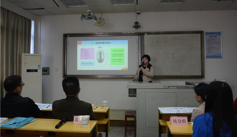 赛前,黄金玉详细介绍了此次比赛的赛程及规则。随后,13位参赛教师按抽签顺序进场开始比赛。比赛中,参赛选手们结合各自课程特点,结合自身的课改理念,按照比赛要求充分展示了各自的课程设计实力。比赛过程紧张有序,展示环节精彩纷呈,答辩环节更是气氛热烈,最终刘淑贞、尹莉、申景桃三位老师脱颖而出,获得了参加学校课程设计比武决赛的入场资格。