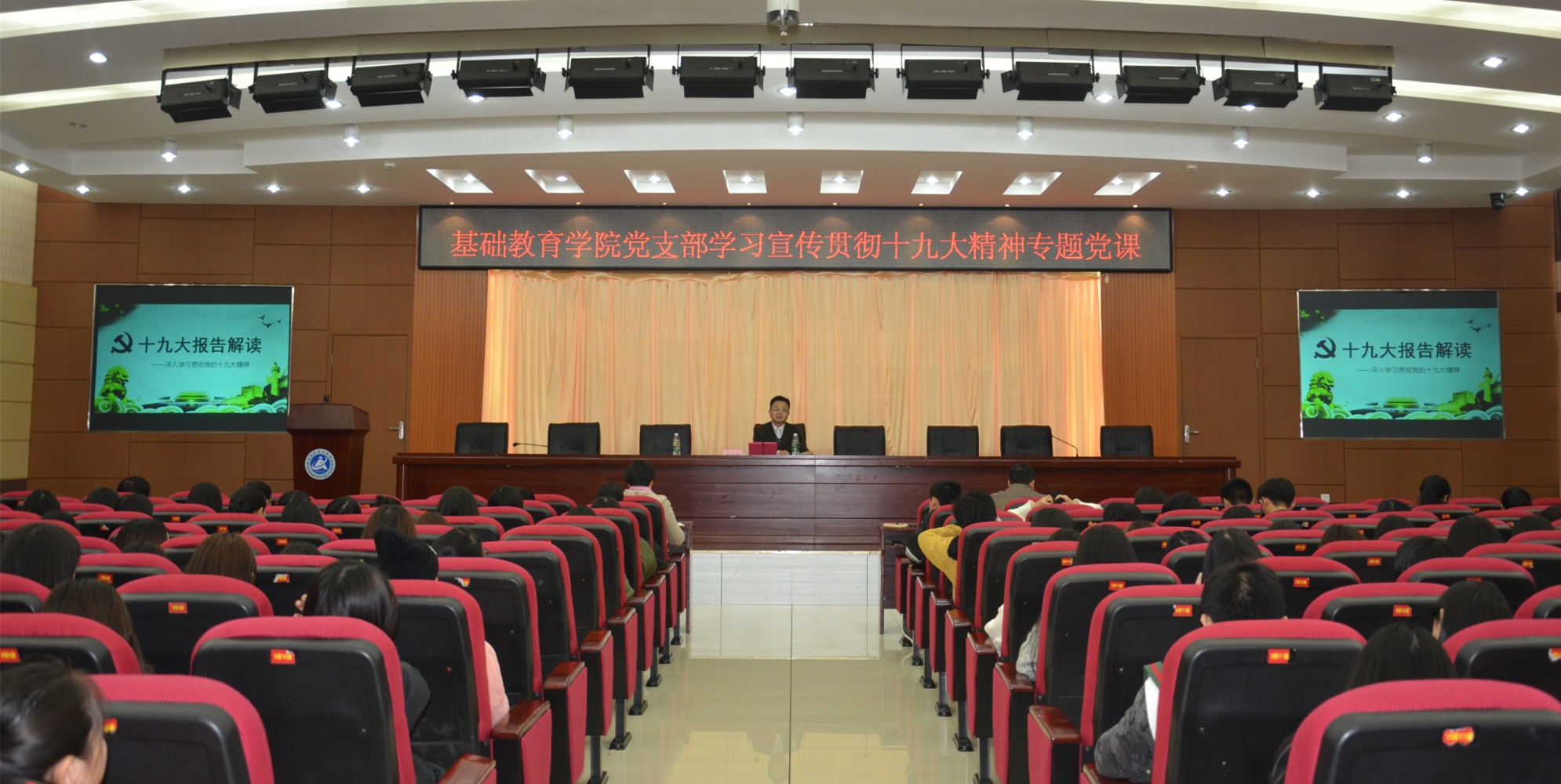 12月8日下午,为深入贯彻学习十九大会议精神,基础教育学院(思政课部)党支部特邀学院(中心)党委成员、中心副主任曾大恒副教授在图书馆五楼报告厅开展了题为《不忘初心 永远跟党走》的专题党课暨形势与政策报告会。基础教育学院全体教职工及来自各二级学院、各相关部门师生共计230余人到场聆听,基础教育学院(思政课部)党务负责人徐慰慰主持了本次活动。