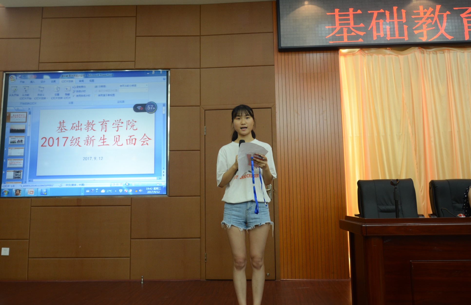 2016级学生干部应英1654班耿晓青代表学长们欢迎学弟学妹