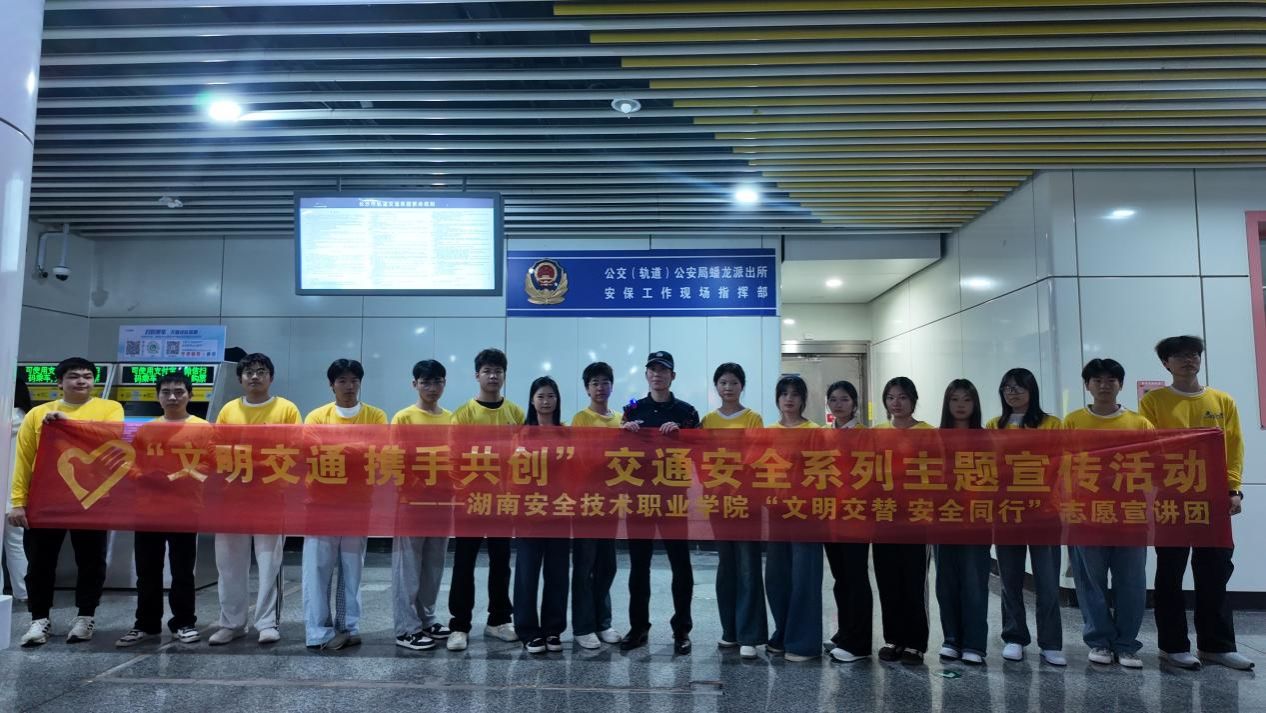 11月16日,团委组织安全信息学院地铁志愿服务队(轨道义警)走进长沙地铁5号线万家丽北站,开展“志愿守轨交 安全伴你行”主题宣传活动。志愿者们充分发挥专业优势,通过秩序引导、安全宣讲等实践,规范乘客乘车行为,全力守护市民轨道交通安全出行。