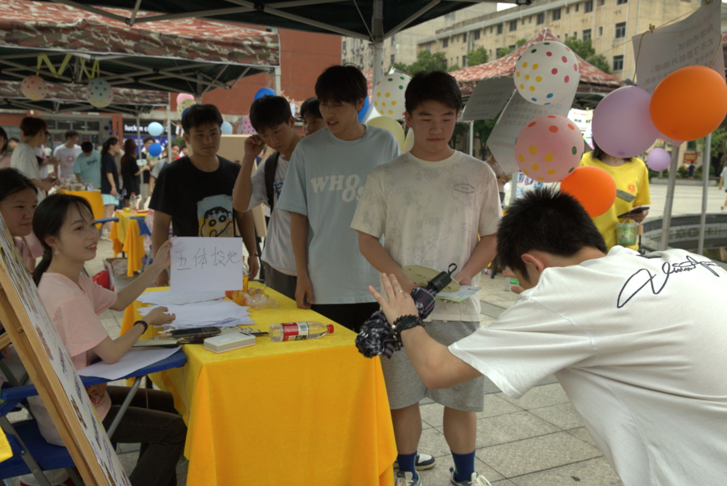 游园会现场人头攒动,热闹非凡。在“共绘笑脸”区,信息工程学院谭睿同学正专注地用明黄色画笔描绘出灿烂笑容,“选择这个颜色是因为它代表着我最近的快乐心情。”“我有一个愿望”打卡墙前,安全工程学院的蒲小重同学写下“希望学会更好地与焦虑共处”的心愿,他说:“这种公开表达的方式让人感到被倾听”。“世界赠予我的”展板已成为感恩情绪的集散地,200余张手写卡片密密麻麻贴满展板。“漆幻漂流”手工作品创作区,同学们正用大漆在素扇上挥洒创意,每一柄漆扇都在大家手中绽放独特韵味。“口是心非挑战”和“你画我猜”游戏区更是笑声不断。每个活动都像一把钥匙,开启了同学们认识自我、关爱他人的心灵之门。