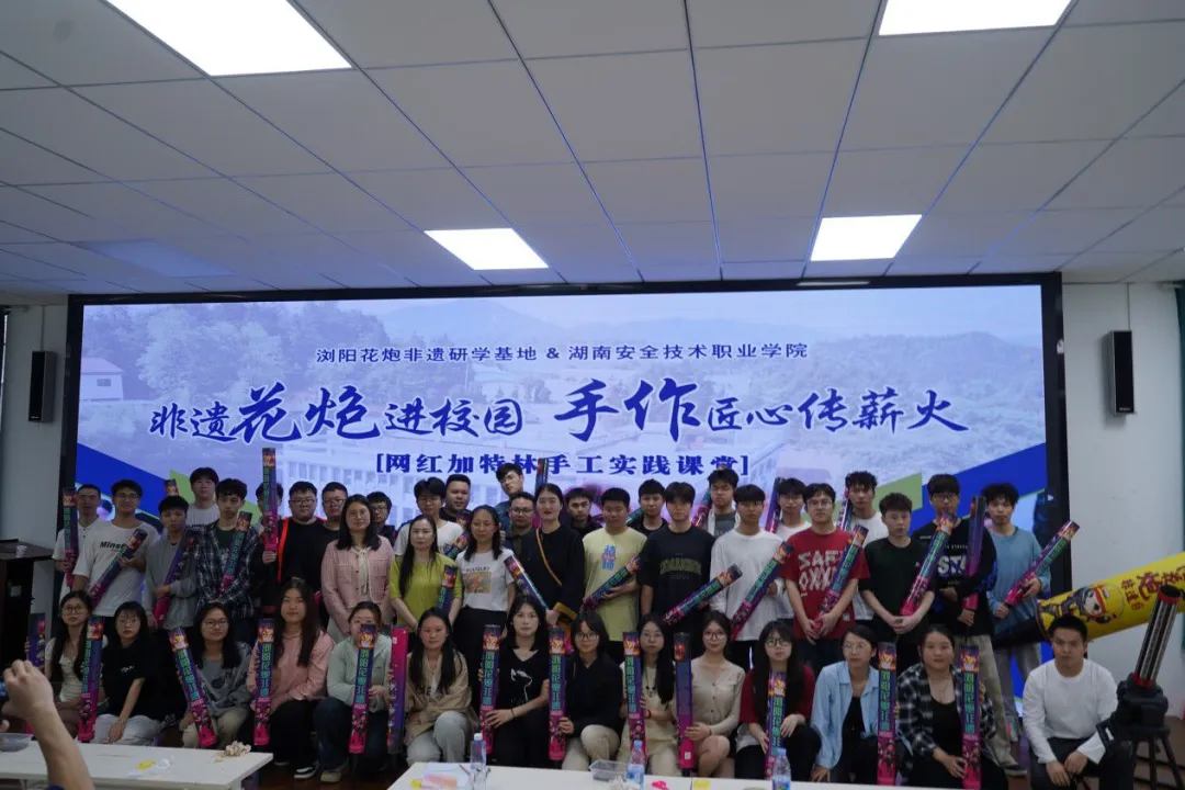 此次活动由校企联合举办,活动以“传承千年花炮技艺 点亮非遗文化之光”为主题,旨在传授烟花爆竹传统技艺,激发烟花爆竹文化认同感,传承浏阳花炮非遗文化,增强非遗保护意识。