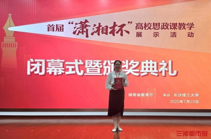 湖南日报7月24日讯(通讯员 向宜 全媒体记者 刘镇东)7月23日,湖南省首届“潇湘杯”高校思政课教学展示活动传来捷报,湖南安全技术职业学院思政课部胡倩老师在高职高专组《毛泽东思想和中国特色社会主义理论体系概论》(以下简称“毛概论”)课程展示中,凭借出色表现斩获特等奖,并将代表湖南省冲击国赛。